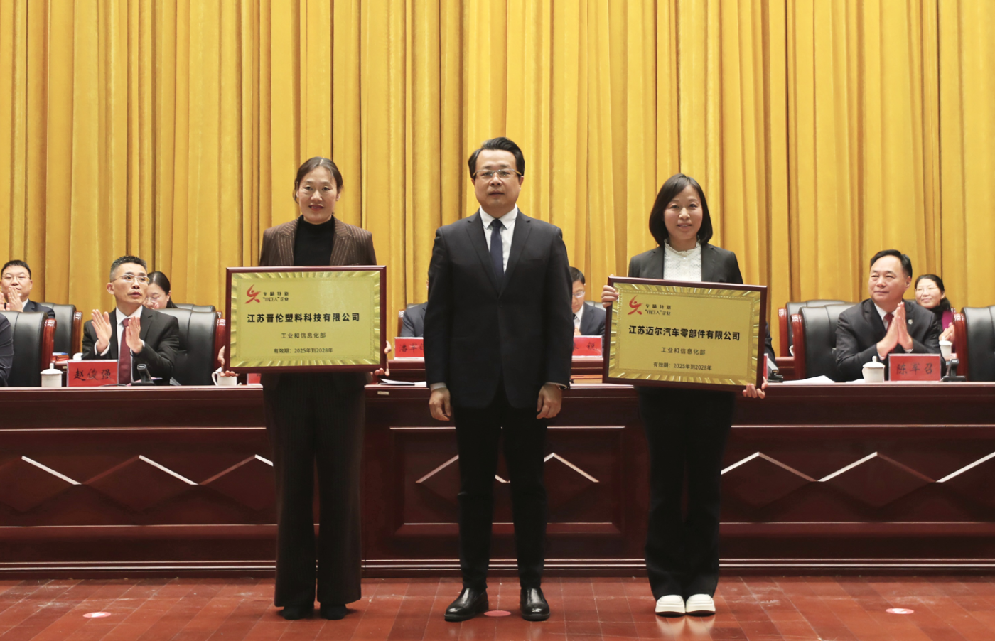 在表彰环节,纽泰格荣获多项荣誉,分别为“2025年度综合实力十强企业”“2025年度规上工业开票销售20强企业”“国家、省‘专精特新’小巨人企业”“省先进级智能工厂”“省瞪羚企业”“2025年度科技创新领军企业”“2025年度技改投资十强企业””2025年度工业纳税突出贡献企业“。