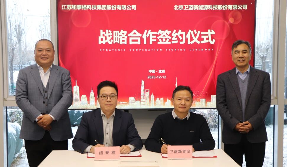 2025年12月12日,江苏纽泰格科技集团股份有限公司(以下简称“纽泰格”),与北京卫蓝新能源科技股份有限公司(以下简称“卫蓝新能源”)签署战略合作协议。双方将深度融合各自在精密制造和固态电池方面的核心优势,携手开拓具身智能与商用机器人这一前景广阔的新兴市场,共同推动固态电池在机器人行业的规模化应用。