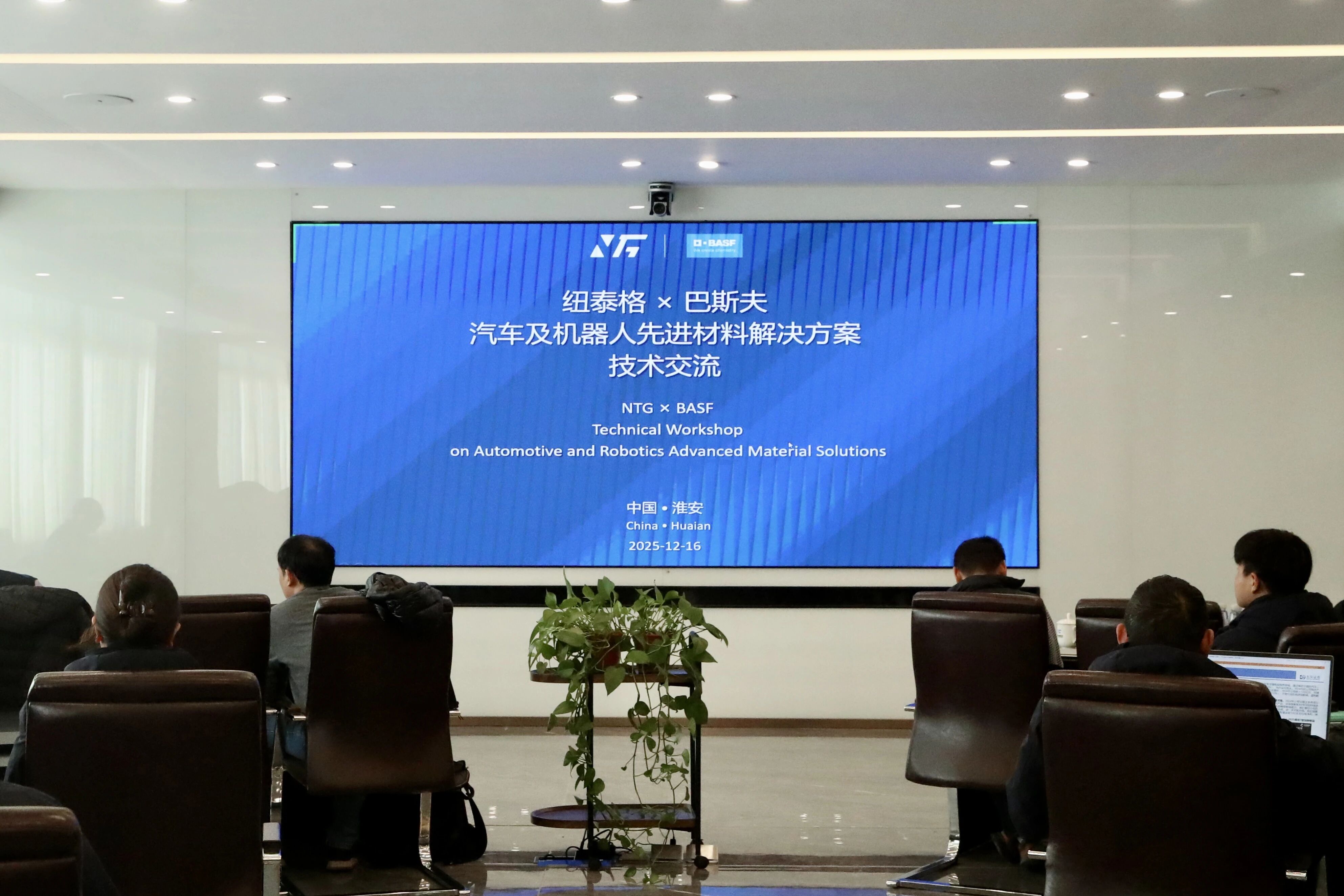 2025 年12月16日,纽泰格与巴斯夫联合主办的“汽车及机器人先进材料解决方案技术交流(首场)”在纽泰格5厂多功能会议室圆满落幕。